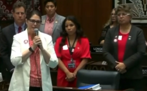 The morning after Stahl-Hamilton’s apology, fellow state Rep. Lupe Diaz led the morning prayer.