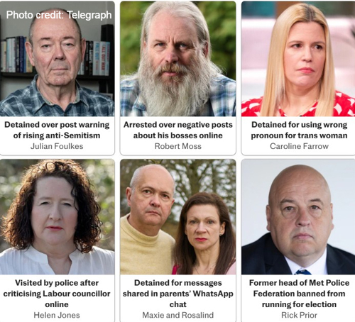 A story by The Telegraph, published after Linehan's arrest, said British police are averaging 30 arrests a day as they chase down the creators behind offensive posts. The story included photos of Brits (pictured below, right) who have been visited by police for their online comments.