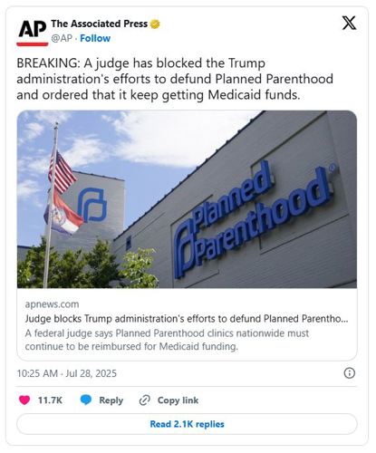 Obviously mark and avoid the Associated Press when it comes to legitimate political conversation. This judge (U.S. District Judge Indira Talwani) didn't block "the Trump Administration's efforts" to do anything. The judge blocked the law.