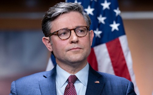 The bill agreed to by House Speaker Mike Johnson (right) passed 286-134. A total of 101 Republicans voted in favor of the bill, 112 against, showing a dangerously divided GOP that has just a one-seat House majority.