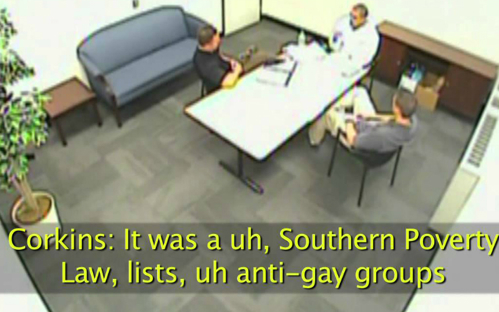 In a video of his confession (pictured at right), Corkins told the FBI he targeted FRC because he found it on the SPLC hate map. He said he intended to shoot everyone in the building and smear a Chick-fil-A sandwich in their faces.